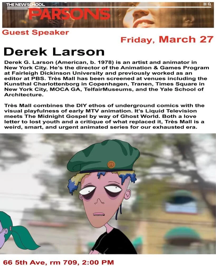 Larson, D. G. (Presenter), "Très Mall: Philosophy, Capitalism and Violence," Rising of Lusitania AnimaDoc Film Festival, Rising of Lusitania AnimaDoc Film Festival, Wrzesnia, Poland. (May 2022).